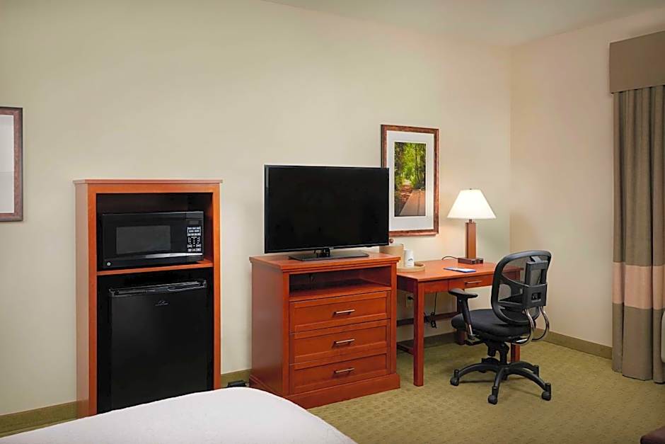 Work area, free WiFi, 32-inch HDTV, tea/coffeemaker, comfortable soft seating Have a relaxing stay in this king room that features our clean and fresh Hampton bed®. The room includes comfortable soft seating, a 32-inch HDTV and a tea/coffeemaker to help you feel at home. Stay productive at the spacious work desk and keep in touch with free WiFi. In the bathroom you'll enjoy our large dressing area with fluffy towels, a WaterPik® showerhead and curved shower rod for added space and light.